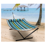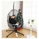 DoubleTT Egg Chair with Stand, Swing Chair Hanging Chair Nest Basket, UV Resistant Removable & Washable Cushions,350LBS Capacity for Bedroom, Balcony, Garden(GR-GR)