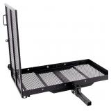 - STANDARD FIT. This trailer hitch cargo carrier with ramp is perfect for installing on most class 3, class 4 and class 5 hitches, featuring a folding 2-inch x 2-inch shank