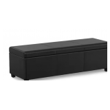 Simpli Home Avalon 54 in. Rectangle Extra Large Storage Ottoman Bench in Midnight Black Vegan Faux Leather, Assembled
