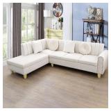 - [Combination of Comfort and Artistry]The L shape sofa appeals to minimalist elegance with a crisp design and broad double lines accented with French piping details and velvet fabric.Dense foam padding and a pocket coil spring system in the cushions offer a luxe seating experience to you.