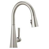 Delta Lenta Brushed Nickel Kitchen Faucet with Pull Down Sprayer, Modern Single Hole Kitchen Sink Faucet, Single Handle, SpotShield Stainless 19802Z-SP-DST