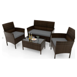 4 PCS Patio Furniture Set with Tempered Glass Coffee Table Grey