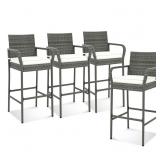 All Weather PE Rattan Bar Chairs Set of 4 with Armrests and Seat Cushions for Porch Backyard