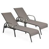 OP70508CF-2 Outdoor Patio Lounge Chair Chaise Fabric with Adjustable Reclining Armrest, Brown - 2 Piece