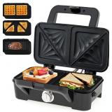 3 in 1 Waffle & Sandwich Maker, Panini Press Grill with Removable Non-Stick Plates