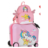 Roomy Storage Space: The set features an 18” ride-on hardshell suitcase and a 12” backpack, providing ample space for organized storage. The suitcase includes cross straps and a zippered storage pocket to keep items secure, while the backpack has a stretched mesh pocket for water bottles.