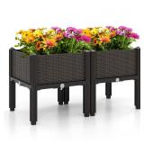 HW70591BN Patio Ottoman with Removable Cushions, Brown - 2 Piece