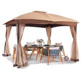 10x12 Gazebo, Double Vent Canopy Gazebos, Outdoor Gazebos with Privacy Netting, Easy Setup Patio Pavilion with Steel Frame Strong Legs for Lawn, Backyard, and Deck(Khaki)