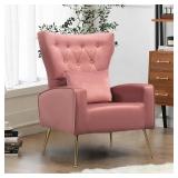 Button- Tufted Living Room Chairs, WingBack Velvet Accent Chair Armchair with Lumbar Pillow, Bedroom Chairs Arm Chair with Golden Legs, Pink