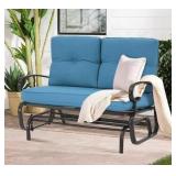 2-Person Metal Outdoor Patio Glider Rocking Bench Loveseat with Blue Cushion