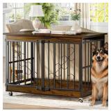 【Functional Features】Our dog kennel furniture comes with 4 smooth rolling caster wheels, making it easy to clean and move around your home. Two locking wheels ensure stability when needed.