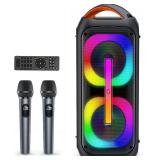 JYX Bluetooth Speaker with 2 Dual 60W 6.5" Subwoofer, PA System with 2 Wireless Mics, TWS Stereo Sound, Deep Bass & Recording for Party, 400W Peak Power Karaoke Machine
