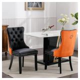 Modern Tufted Dining Chairs Set of 2 - High-End PU Leather Upholstered with Wood Legs and Nailhead Trim, Contemporary Design for Dining Room, Black and Orange, 25.5" H x 19.7" W