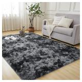 Large Shag Area Rugs 6 x 9, Tie-Dyed Plush Fuzzy Rug for Living Room, Ultra Soft Fluffy Furry Rugs for Bedroom, Indoor Carpet Nursery Rugs for Kids Room Home Decor, Light Grey