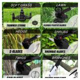 The electric weed wacker cordless with wheels all in one: grass trimmer/ lawn edger/ small mower/ brush cutter. Not limited by power cord, you can use it anywhere. Includes 2 x 2000mAh high-capacity rechargeable batteries working time up to 90 minutes. Equipped with 850W high-power pure copper motor with no-load speed up to 20,000RPM. it can easily meet all daily cleaning needs. Weeding is no longer a burden and you can enjoy trimming with your family
