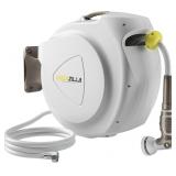 Retractable Garden Hose Reel, 1/2 in 120+6 ft, Heavy Duty Wall Mounted Water Hose Reel, Spring Power Automatic Rewind, Any Length Lock, 180° Swivel Bracket, 10 Pattern Spray Nozzle