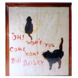 - "Oh! Won't You Come Home, Bill Bailey" Themed Antique Textile Artwork w/ Wooden Frame