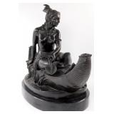 - After Duchoiselle (French 19Th C.) Bronze Sculpture, Indian Maiden In A Canoe Statue