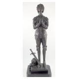 - Bronze Statue of Joan of Arc in Armor on Marble Base, Signed Rubin