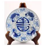 - Qing Dynasty Blue and White Porcelain Dish w/ Crab Motif