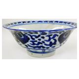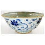 - Qing Dynasty Blue and White Ceramic Bowl with Floral Motif