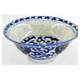 - Antique Chinese Blue and White Ceramic Bowl w/ Hand-Painted Designs and Marked Base