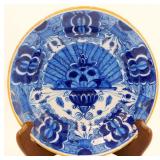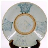 - Chinese Hand-Painted Blue and White Ceramic Plate w/ Marked Base