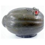 - Chinese Pewter Covered Box with Gemstones and Inlay