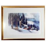 - Bogomir Bogdanovic Signed Winter Landscape Print, Framed