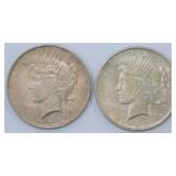 - 1922 S Peace Silver Dollar Coins, (2)