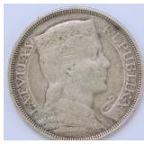 - 1931 Latvian 5 Lati Silver Coin Featuring Coat of Arms