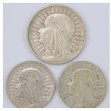 - Grouping of Polish Antique Silver Zlotych Coins, (3)