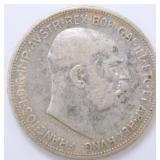 - 1912 Austria-Hungary Silver 2 Corona Coin Featuring Emperor Franz Joseph I