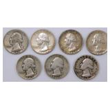 - Grouping of Pre-'65 Washington Silver Quarters,1935-1964, (7)