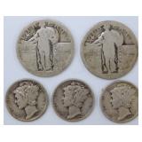 - Mix of U.S. Silver Coins, Standing Liberty Quarter and Mercury Dimes