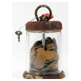 - Glass Coin Bank w/ Lock, Contains 200 Wheat Pennies
