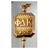 - 10K Gold Phi Delta Kappa Fraternity Pendant, 1906