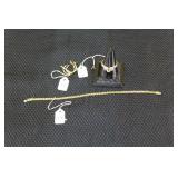 Gold, Silver & Jewelry: Gold Rings:10K: Ladies ring Sz.9.5 w/ Glass Stone, Ring Sz.6 & Ear Rings; 14K: Ring w/ DQCZ Stones, Ear Rings & 8.25" Bracelet; Sterling Ring Sz. 7, Costume Jewelry: Necklaces, Pendants, Rings, Watches Scarab Bracelet & Ladies Watches; & More.