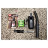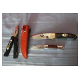Hunting, Fishing & Knives: Hunting: Rattling Antlers, Gun Case w/Glass Door, Hunting Jackets, Hunting Themed Fanny Packs, Full Body Harness, Lasko Heater, Hunting Calls: Primos, Hoot Flute, Ridge Runner & Hawk Call; Fishing: Tackle Box w/ Lurse, Bottom Line Depth Fish Finder, Wood Fish Rode Holder, Fishing Rods & Reels: Ugly Stick w/ Strata Maxx Reel, Triton Gt Reel w/ Shimano Stick, Quantum Stick w/ Garcia Reel, Penn Fathom Master Grafite w/ Penn Reel, Strata Maxx Rod, Ugly Stick Rod & Hunting Fishing Guides; Knives: Robert E Lee Bowie (Serrated), Large Frost Cutlery, Kershaw "Speed Safe" Single Blade, Parker Store NRA Stainless & Mossy Oak Knife (Skull Knife);