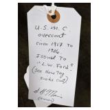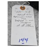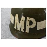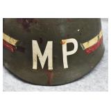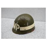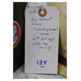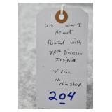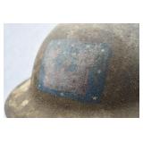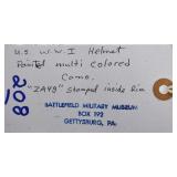 26. U.S. WWI Helmet – Painted 79th Division – w/Authentic 1970’s Blue Dymo Sticky Tag from G.W. Marinos