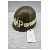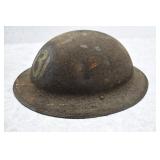 28. U.S. WWI Helmet w/Black Painted “Engineer Castle” on Front – w/Non-Legible Letters on Side – (Shell)
