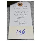 21. German Police Pattern Helmet Made of Steel – w/Original 1960’s Dymo Sticky Tag on Front