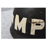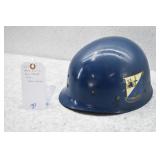6. Double Decal Police Helmet Made of Steel – Makers Marked Liner w/Chin Strap – Possible Un-Issued Condition – Displayed 1980-2024