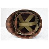 717. German Nazi M-1935 Turtle Shell Camouflage Helmet – Possible Luftwaffe Gray Inside – w/Liner and Chin Strap