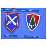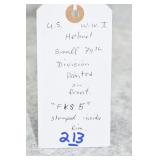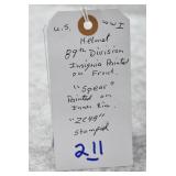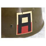 18. U.S. WWI Helmet – Marked on Strap “Howard S. Samson” – Marked Both 34th Div. & 79” Division – Stamped “ZA52” – w/7 Shoulder Patches & Insignia Glued to the Outside of Helmet – Possible Part of a Larger Group