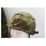 627. Unknown German Type Helmet w/“S.S.” Cloth Helmet Camouflage Cover and Reproduction “S.S” Decals – Spanish?