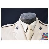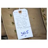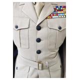 725. Nazi German Lt. General Uniform – Authentic 4 Pocket Tunic w/Lt. General Shoulder Boards Made of Fine Twill Cloth. The Straight Leg Trousers Are Moth Damaged – The Breast Eagle Was Cut Off in Accordance w/the Unconditional Surrender of the Nazi Armed Forces – The Tunic Has Green Buttons Rather Than Gold Found on Similar Uniforms – “The Aiguillette Was Made of Gilt Cord for General Officer’s” Source: Uniforms & Traditions” Augolia & Schlicht, R.J. Bender Pub Chapter 12, Page 107. – The Edelweiss Patch is Sewn on the Right Shoulder of the Tunic, The Stitching May be Post WWII – U.S. Vet Bring Back (Lancaster, PA), The Original Owner of These Garments is Unknown – Displayed in the Museum From 1977-2024