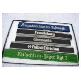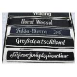 696. WWII Nazi 9-Piece “S.S.” Cuff Titles of Camps – All are Reproduction