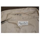 686. WWII Nazi “S.S.” Assault Gun Camouflage Tunic – Cloth May Be Authentic Twill – Marked “A.W. 44” Part Not Legible “Berlin “D.R.G.M.” – Back Seam Selvedge Edge – Shoulder Seam Bound – Other Seams Felled – Post War Assembly and Post Back War Buttonholes