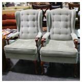 1311 Pair of matched Chippendale style dining chairs, with carving decor and ball and talon feet, nice tapestry style fabric seating, they are ready for your home only have two will make nice accent chairs to any room